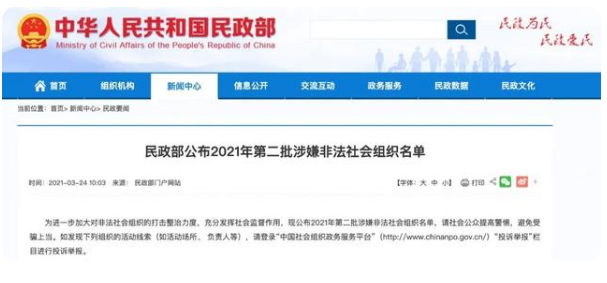 民政??4日公布了(jin)2021q第二批涉嫌非法C会(x)l织名单Q请C会(x)公众提高警惕Q避免受骗上当。如发现下列l织的活动线索(如活动场所?负责人等Q,L(fng)录“中国社?x)组l政务服务^台”,“投诉D报”栏目进行投诉D报?span class="bjh-br">